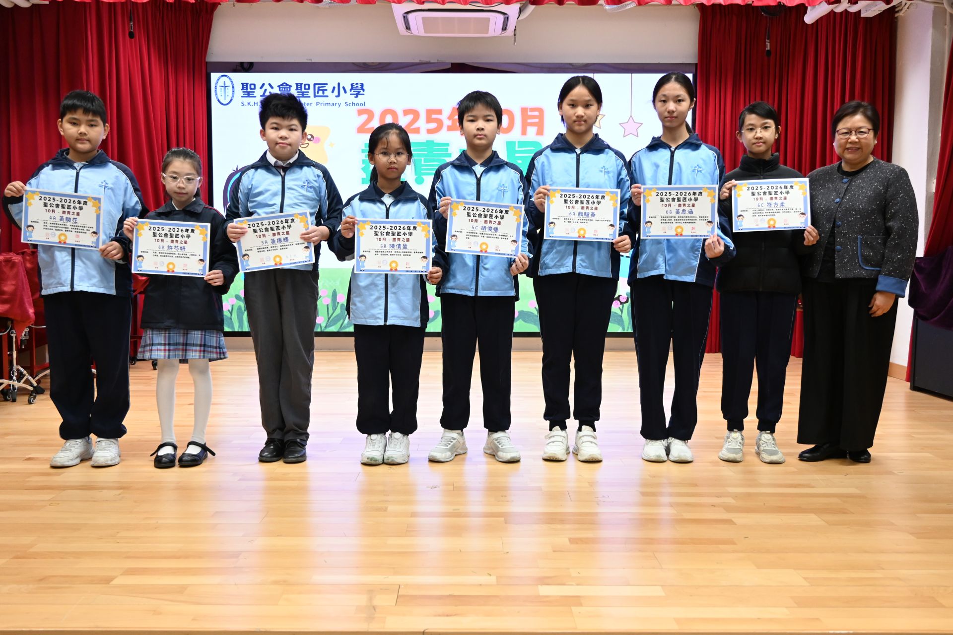 4A 黃駿茳 4B 許芍妍 5A 黃振輝 5B 陳倩盈 5C 胡俊逸 6A 顔驪燕 6B 黃思涵 6C 符方柔